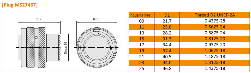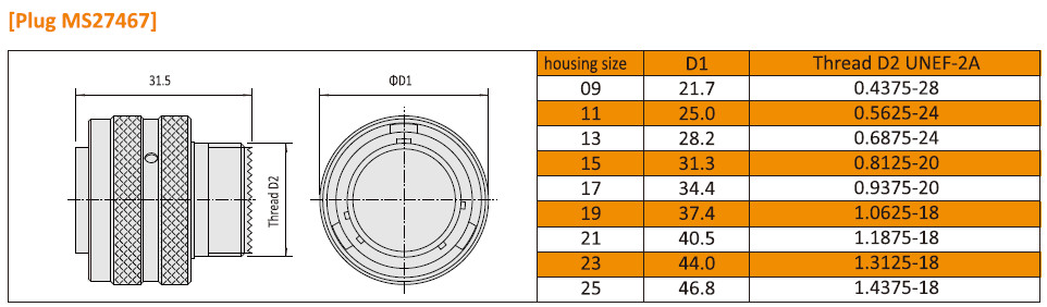 অ্যাম্ফেনল MIL-DTL-38999 I সিরিজের জন্য মাত্রামিলি স্ট্যান্ডার্ডJY27467 সামরিকবৃত্তাকার সংযোগকারী